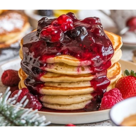 Concentrado denso y realista que imita la mermelada de frutillas y moras, cocinadas a fuego lento, evocando la calidez de un dulce recién hecho.